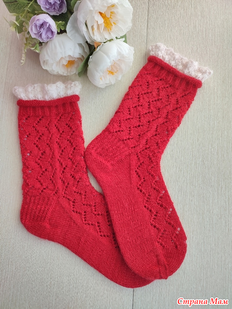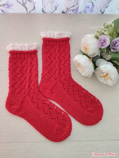 Очень хотелось заказчице ажурные носки с рюшами.