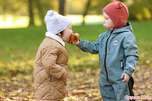 Егорушка угощал тортиком свою подружку.