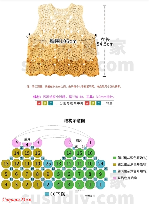 Пряжа: SuSu’s Little Fairy, Morandi-4#. Инструменты: крючок для вязания 3,0 мм.