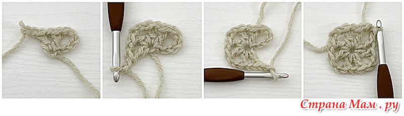 4 возд. п., соед. ст. в первую возд. п., чтобы образовалось кольцо. Можно также начать с волшебного кольца .