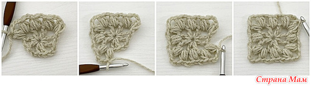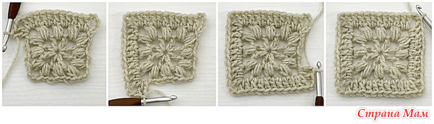 – Видеоурок по вязанию этого квадрата можно найти здесь