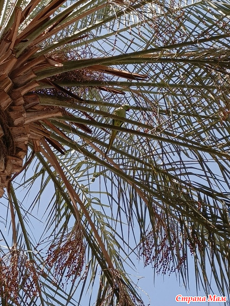 Ничего себе, напекло голову, подумала я. При ближайшем рассмотрении, это оказались попугаи.Удивительно, но жара переносится в Дубае гораздо легче, чем у нас дома. При 30 градусах нет изнуряющей жары. Такое приятное сухое тепло.