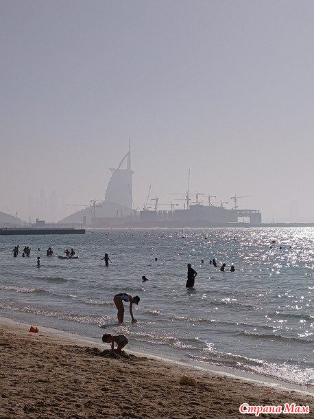 После встречи с гидом мы поехали на пляж. Из отеля есть трансфер, но это не наш случай. Проще ни от кого не зависеть, поэтому, выдвинулись на автобусе. Выбрали пляж, с которого вид на знаменитый отель Парус. Купались, загорали.