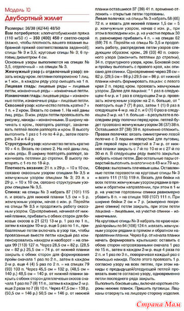 Двубортный жилет с отложным воротниеом. Спицы.