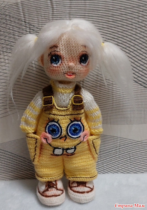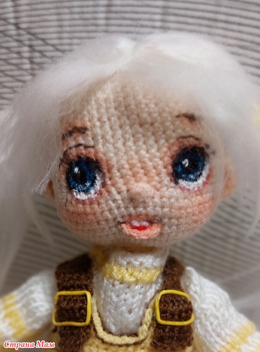 Хочу показать вам мою очередную куколку.Связана она по МК Светланы Власовой.Куколка не большая-22см . Проволочный каркас только в руках. Голова поворотная. В этот раз я впервые делала паричок . В его основе-шапочка из влажных салфеточек. И волосы из пряжи..Расчёсано-вычесанной пряжи. Это то же я делала первый раз. Не совсем понравился эот способ делать прядочки,так как ну очень большой отход пряжи.и длина прядок меньше получилась почти в два раза.. Хотя сами волосики понравились в результате.. Но для себя решила,что в следующий раз возьму просто пряжу для валяния.Думаю результат будет не хуже.А вот шапочку такую для паричка мне очень понравилось делать. возьму себе на заметочку как вариант..
