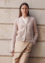 Вам потребуется: пряжа Lana Grossa Cool Wool Seta (80% шерсти мерино экстрафайн, 20% шелка, 160 м/50 г) – 9 (10) 11 мотков светло-розовой (цв. 2010); cпицы № 2,5 и 3; 3 пуговицы диаметром 20 мм.