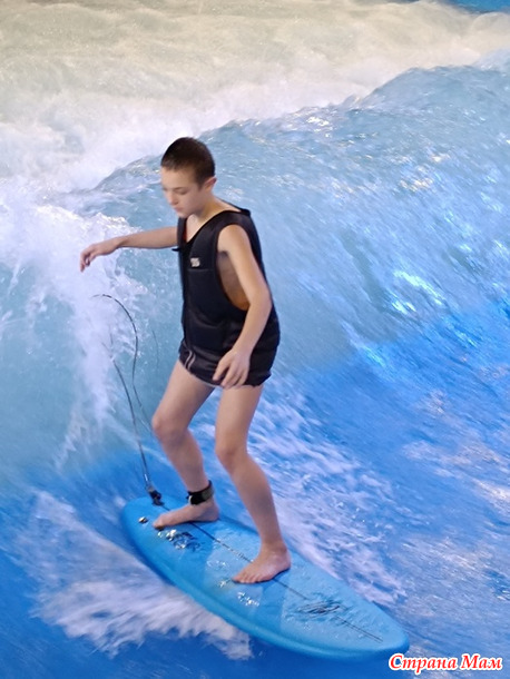 чтобы внук Роман (13 лет) поучился сёрфингу вместе с тренером.