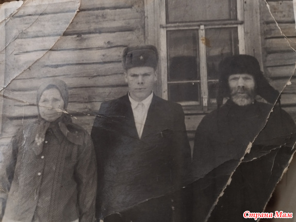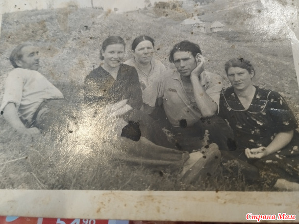 А вот на этом фото те родные люди ,которых я даже и не видела.Прабабушка Аленка родилась в 1876 году.Умерла 31 декабря 1977 года.Столько эпох пережила...До самой смерти была на своих ногах и с ясным умом.Вот только недавно это фото прислала жена двоюродного брата мамы ,а д.Володя хорошо помнит бабушку и много общался с ней.,он 1947 года .Нужно пока не поздно ,побольше расспросить о ней.Ну хоть фото есть,пускай и такое.