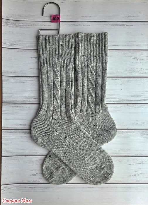 Серые носки с косичкой.