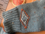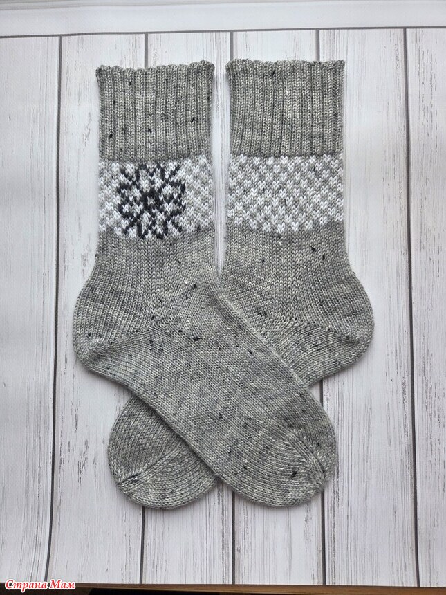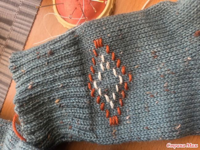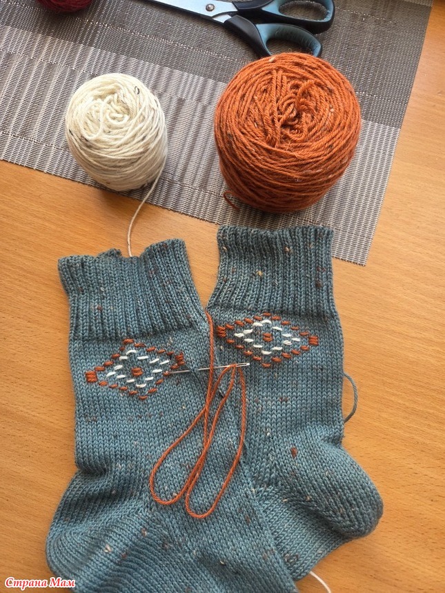 Серые с жаккардом и неудачной вышивкой. Вышивка в процессе распарывания. Не понравилось.