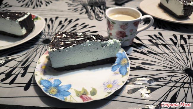 Когда суфле полностью застыло, можно вытаскивать торт и украшать.