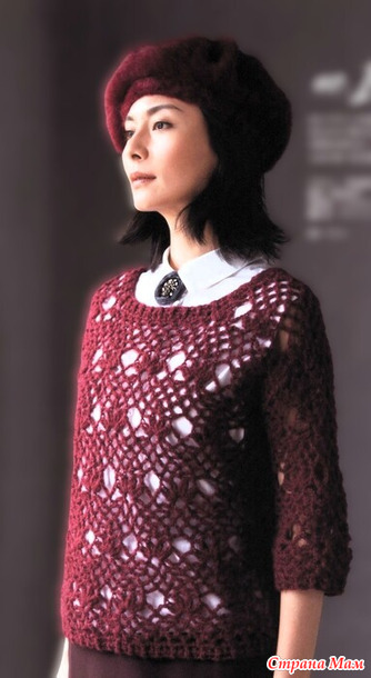 *Советы по вязанию. Вязание по схеме. Наберите воздушную петлю группой, за исключением крайних петель. Начните вязать, набрав полупетли воздушной петли основной части и рукава, а также петли с изнаночной стороны.