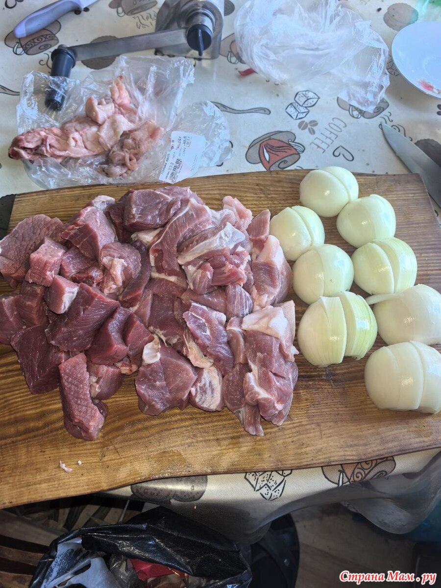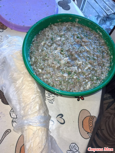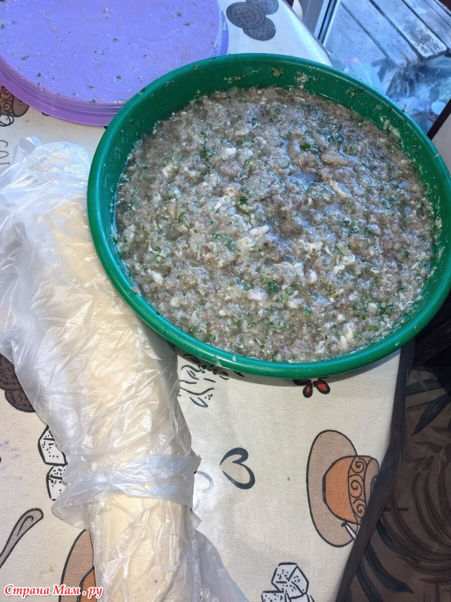 мясо должно быть очень-очень холодным, вместо воды лучше брать крепкий бульон, тоже ледяной, и всю массу желательно вместе еще раз охладить. У меня начинка так и стоит в морозилке, пока я катаю очередную партию лепешек.