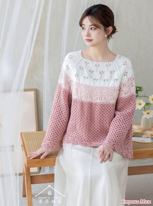 Рукава разделены на левый и правый, оба связаны крючком вдоль линии, отличающейся от задней части, с использованием воздушных петель под мышками и предварительно зарезервированных мест. Подробности смотрите в видеодемонстрации.