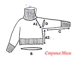 Для того, чтобы определиться с размером, измерьте окружность Вашего бюста, добавьте желаемый припуск на свободу облегания и выбирайте размер, ориентируясь на значения мерки В (финальная окружность пуловера по линии груди – см. таблицу ниже).