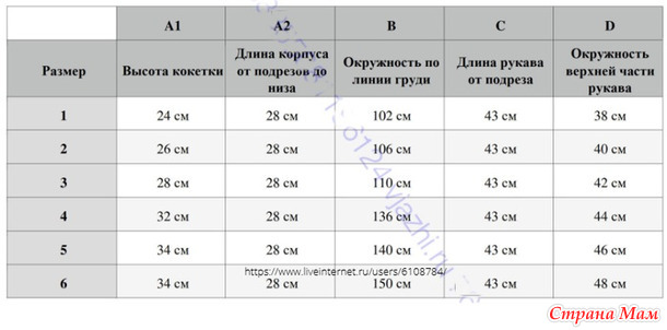 Описание разработано для размеров 1 (2, 3) (4, 5, 6).