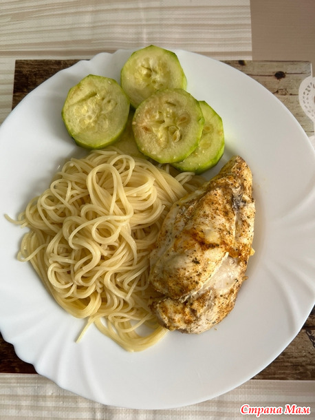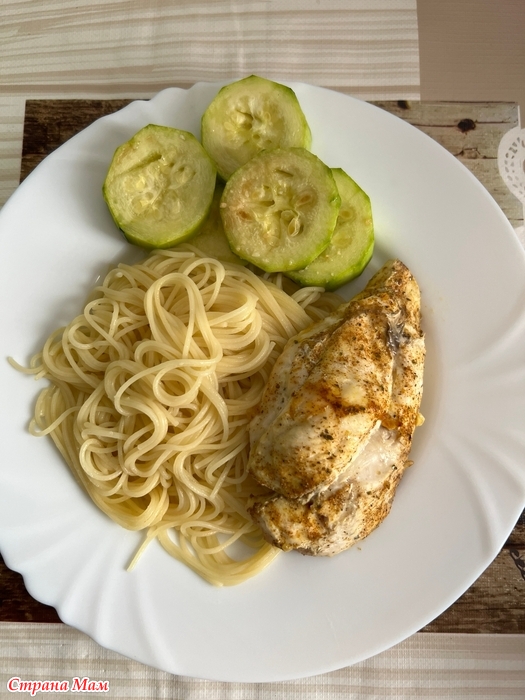 Курицу же запекала, к ней макароны и опять кабачки)))