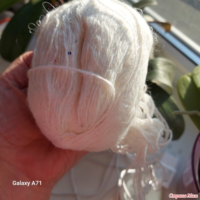 Беленькие, сама пряжа уже с добавлением мелких пайеток,но их увы..очень мало...и + в пряжу добавлена блестящая нить...