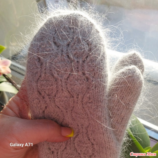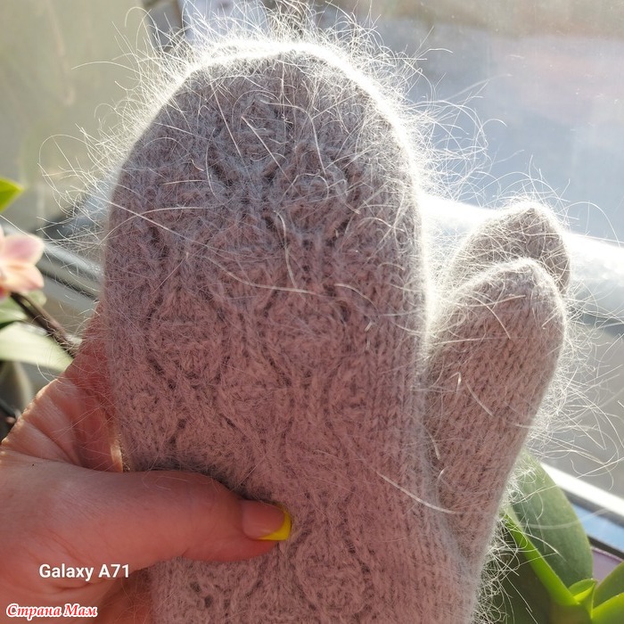 Пряжа "пух норки", заказывала на "Temu".Варежки двойные.
