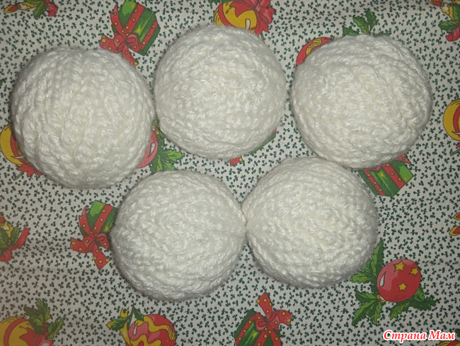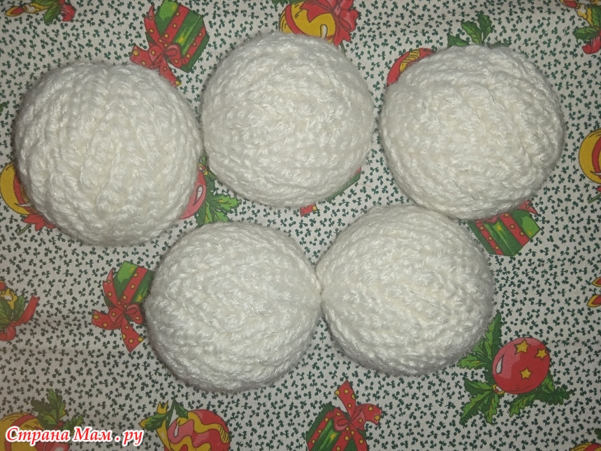 Связаны поперечным вязанием крючком. Узор - веточки. Внутри пенопластовые шары диаметром 5 см.