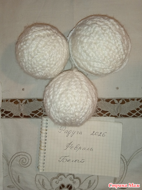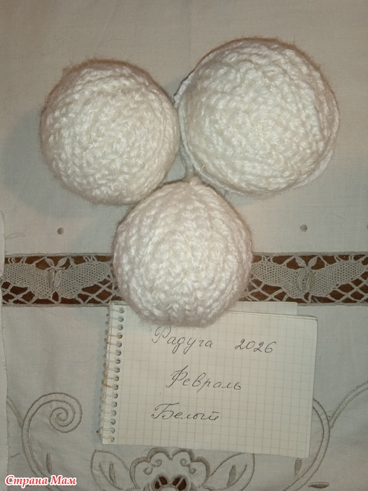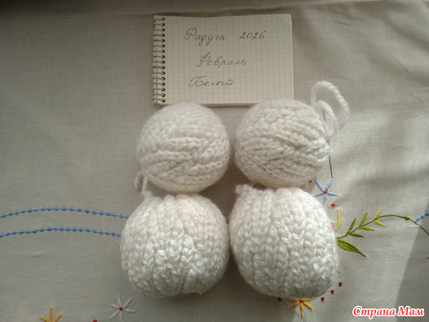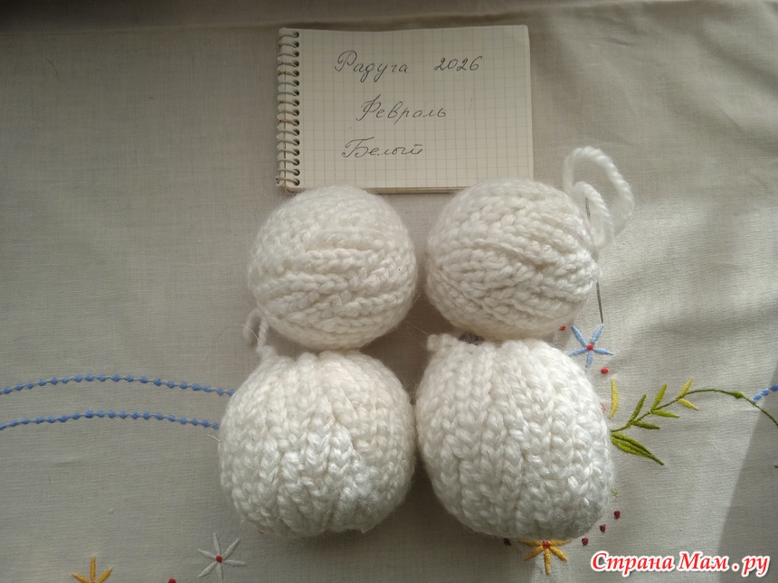 В компанию к моим красным, январским новогодним шарам, решила связать и белые.
