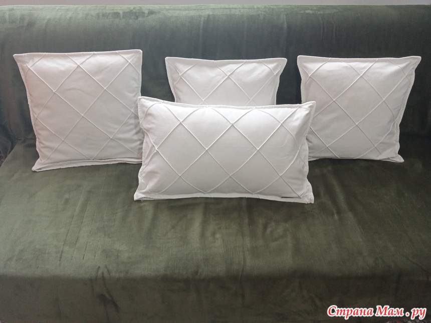 К сшитым ранее зелёным наволочкам с защипами, собиралась в комплект или на смену сшить и белые. Поэтому сразу принимаюсь за дело.
