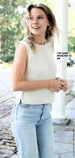 Для летнего сезона этот топ без рукавов — настоящий хит! Связанный платочной вязкой натурального оттенка, он выполнен из 100% хлопковой пряжи, что гарантирует непревзойденный комфорт. Вяжется плоским полотном: спинка и перед вяжутся отдельно, снизу вверх, а затем соединяются швами. Два небольших разреза добавляют гламура подолу. По бокам расположен декоративный элемент, созданный с использованием популярной техники L-шнура.