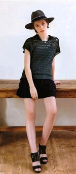 Советы по вязанию. Спинка: Наберите воздушную петлю и вяжите узором. В первом ряду поднимите полувоздушную петлю с набора петель и две нити пряжи с изнаночной стороны. Боковые части, проймы, вырез горловины, плечи.