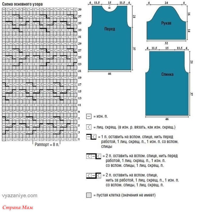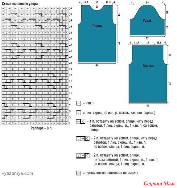 Далее вязать 46 рядов согласно схеме основного узора.