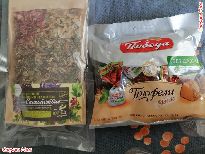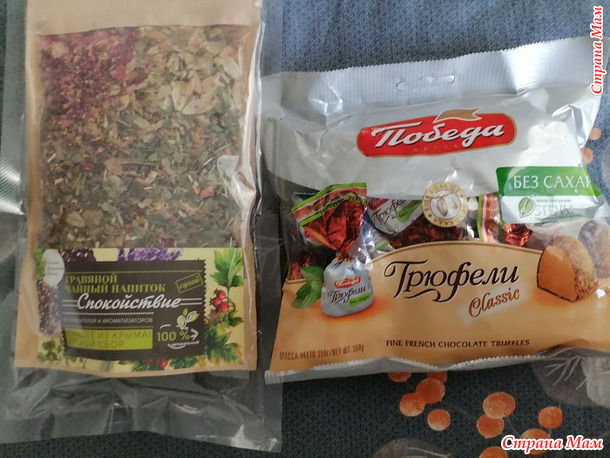 Любимые конфетки и Травяной чай. Оля, как знала, что я на ночь пью именно травяной чаёк.