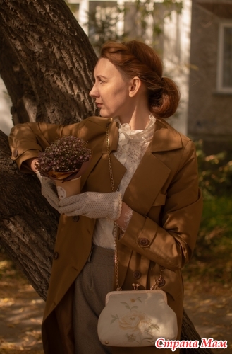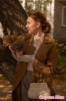 На мой взгляд на первых фото букет не "вяжется" с вашим ретро-образом в брюках. Образ хороший, а букет как-то не из этой оперы)
