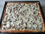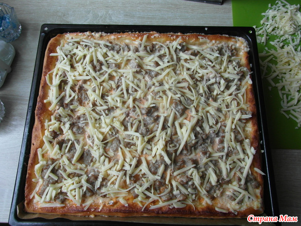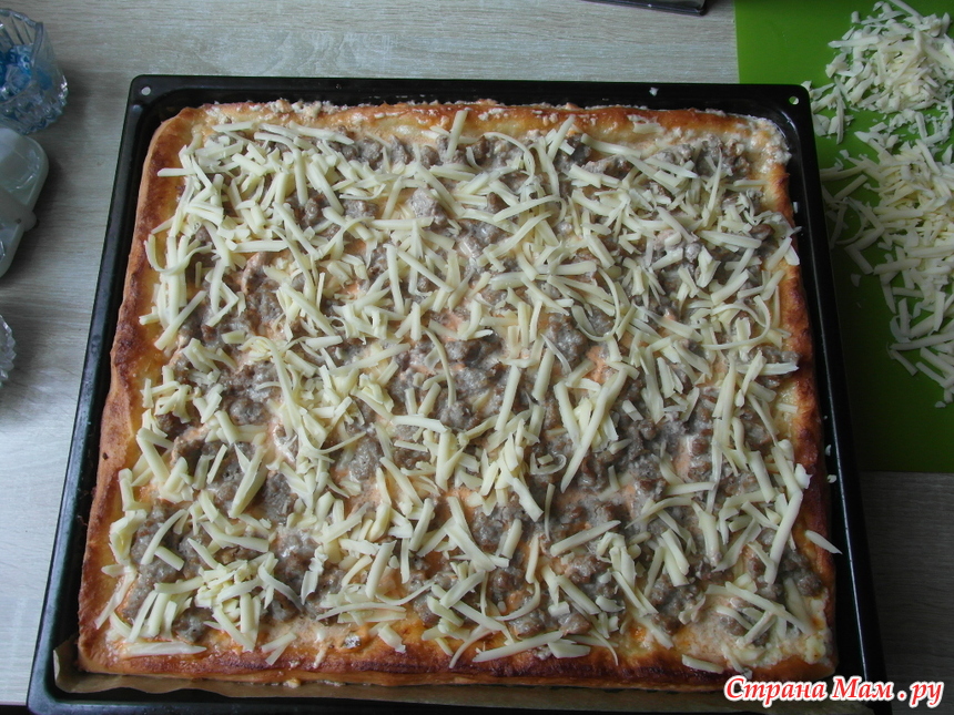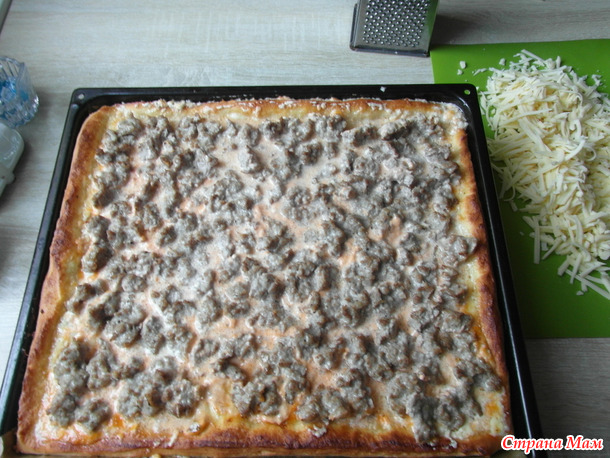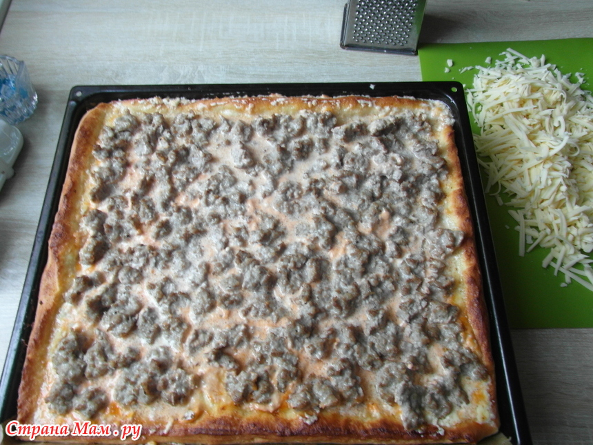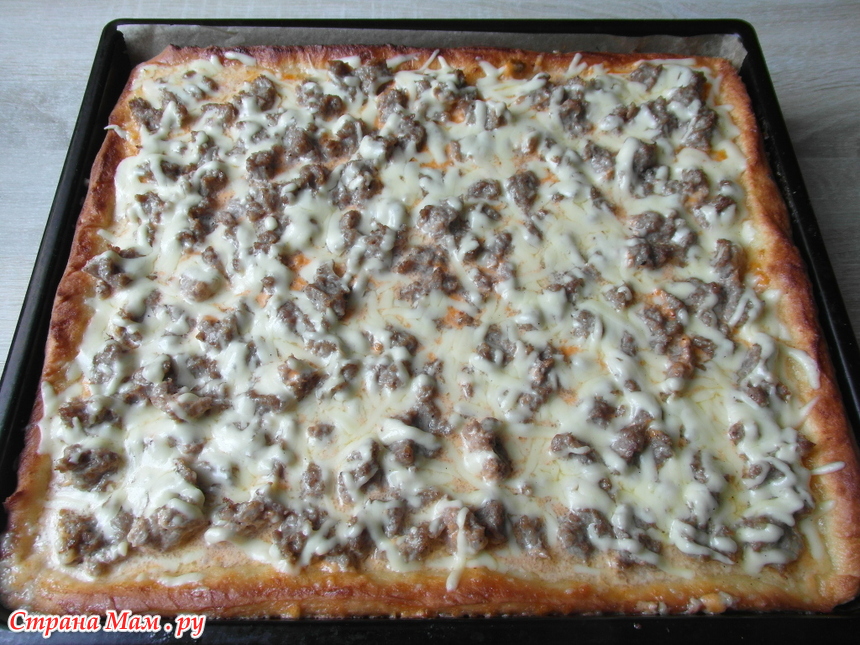 НО! здесь важно накидывать фарш, а не размазывать. Мясо сжимается и по итогу будет мясная маленькая лепешка фарша на центре пиццы. А так кусочки останутся равномерно по всей площади пиццы.
