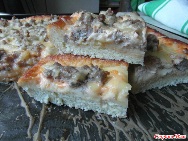 Тесто на пиццу я делаю как простое пельменное, но с добавлением дрожжей, немного. Или можно на молоке.
