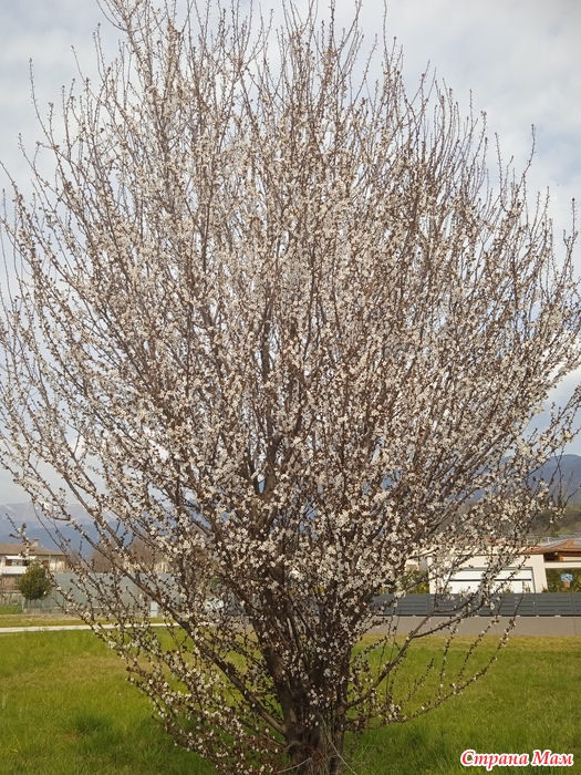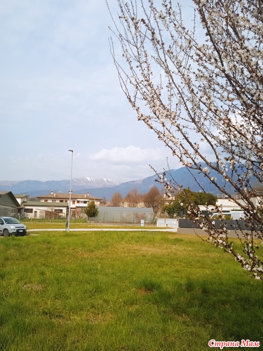 А Вам местная итальянская магнолия и слива. Фото сделаны сегодня. На последнем фото немного снега в горах(именна эта, гора, 1500 над уровнем моря). А за ней в 100 км(серпантинной дорогой), Кортина Д’Аэмпеццо.
