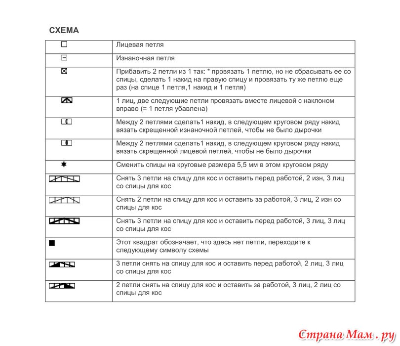 Примечание! Размер спиц указан в качестве рекомендации. Если в связанном образце на 10 см слишком много петель, возьмите спицы большего размера. Если в образце на 10 см слишком мало петель, возьмите спицы меньшего размера.