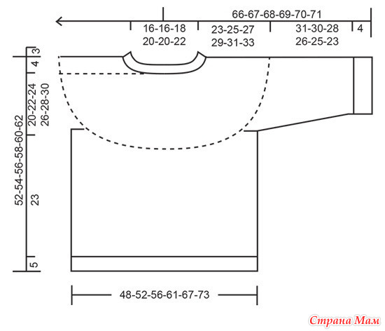 Длина свитера – ок. 52-54-56-58-60-62 см от плеча вниз.