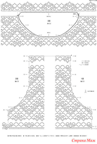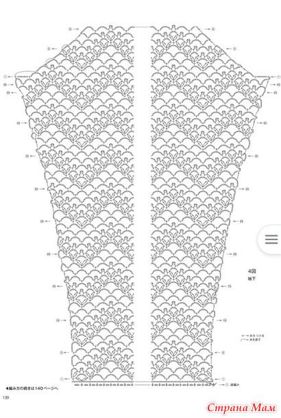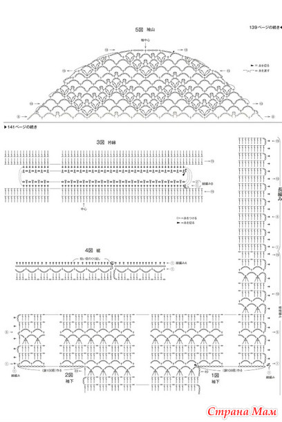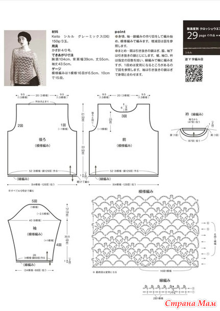 Основная часть изделия, рукава... Начните с набора воздушной петли, затем вяжите узором. Для прибавления или убавления петель используйте схему.