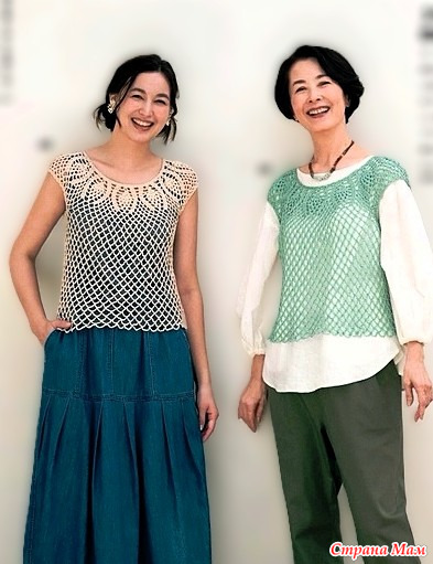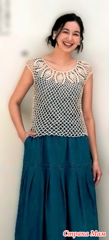 Ажурный топ с ананасовой круглой кокеткой. Крючок.