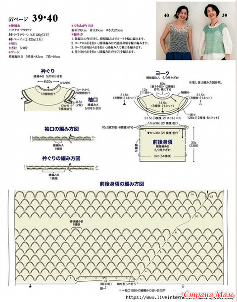 Схема B: 5 узоров - 8,5 см, 7 рядов - 10 см.
