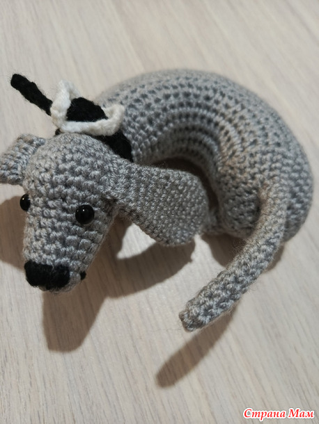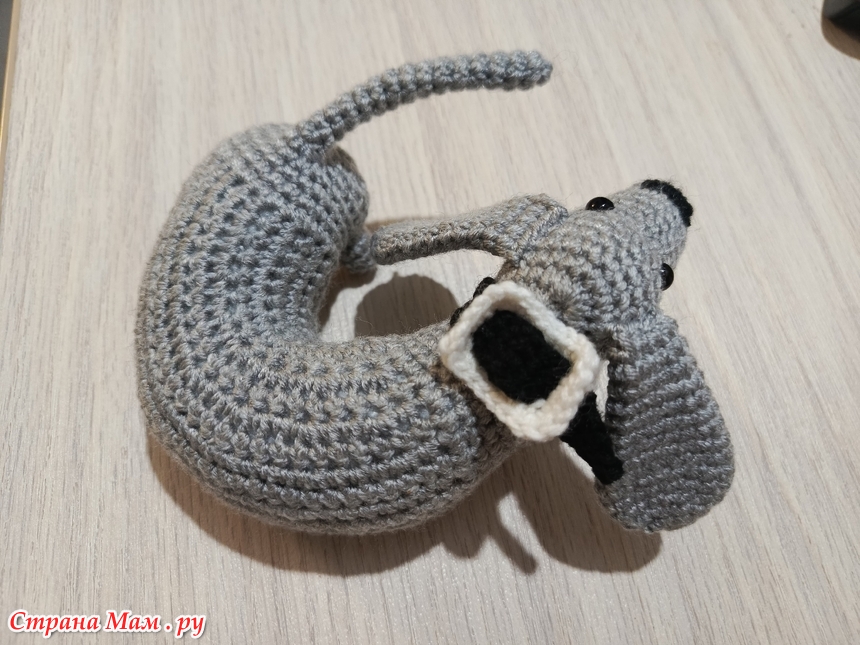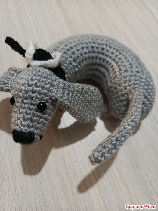 То есть вязать. Сказано - сделано. Начала в 8 утра, а к 22 часам уже нарядила ее в ошейничек. Фактически вязала всего часа 4, предпраздничные и бытовые дела отвлекали.
