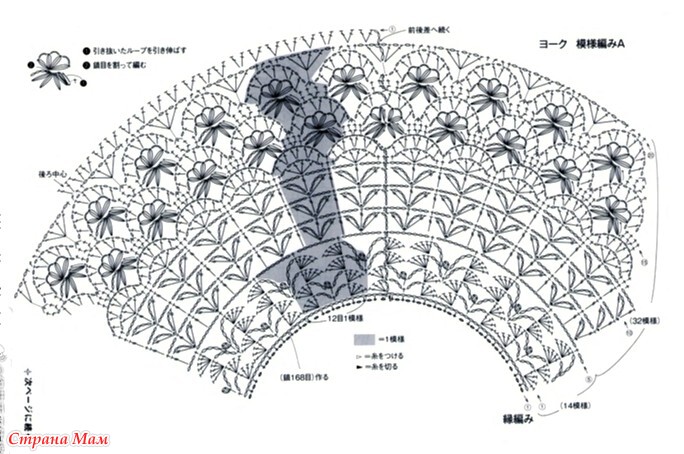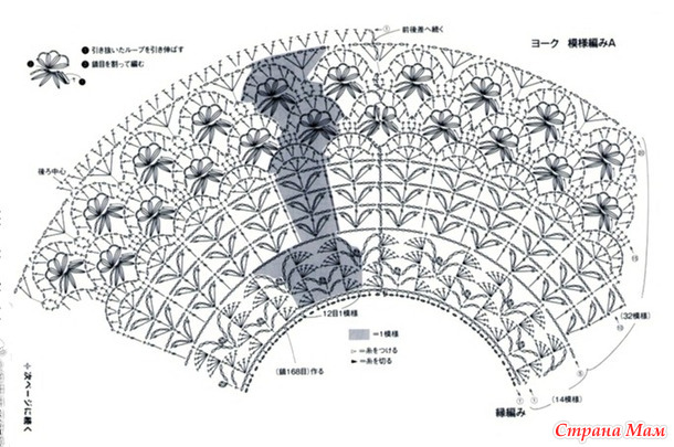 Начинайте вязать лицевыми петлями. Чтобы увеличить кокетку, провяжите 20 рядов, как показано на схеме.