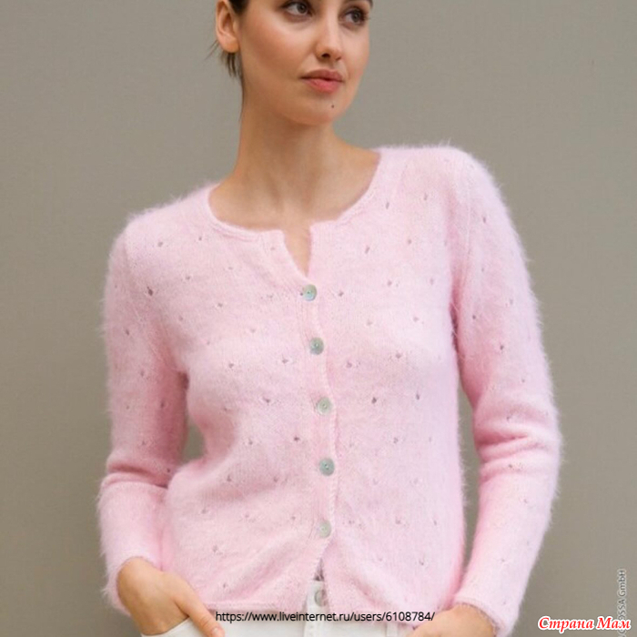 • Вязать симметрично левой полочке, обращая внимание на начало ажурного узора для соответствующего размера.