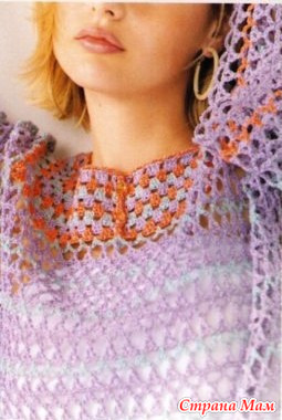 Ажурный пуловер реглан сверху с планкой на пуговицах. Крючок.