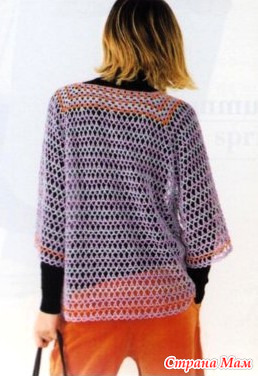 Этот пуловер, выполненный сверху вниз, выполнен в яркой, насыщенной цветовой гамме, имеет квадратный вырез и симпатичную застежку на пуговицах. Он добавляет легкости в сочетании с более плотной одеждой и может быть надет поверх майки для создания живого сетчатого образа.