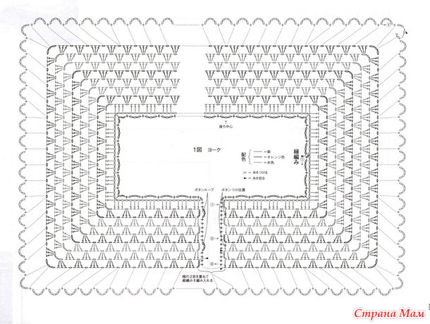 Краткое описание: Обратитесь к схеме, чтобы набрать петли для воротника и переднего края, затем провяжите швом подгибки. Сделайте петлю для пуговицы на правом переднем крае. Пришейте пуговицу для завершения работы.