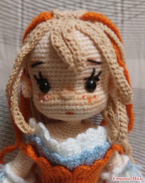 Ну вот и готова у меня подружка феечки Миреллы-. Вторая куколка из серии МК moonlighcrochet89 в переводе от Людмилы Мосиной. Вязать мне по прежднему интересно не столько саму феечку,сколько её наряд..