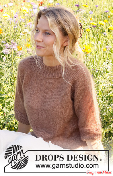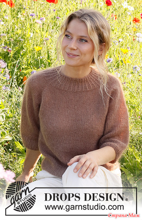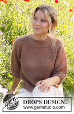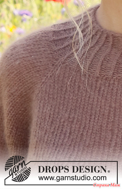 Джемпер вяжется в 2 нити пряжи DROPS Kid-Silk сверху вниз регланом и имеет рукава длиной ¾. Размеры S - XXXL.