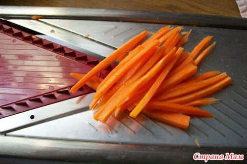 На этой терке я делаю морковь по корейски холодным способом. Она тоньше и маринуется быстрее и есть приятнее.