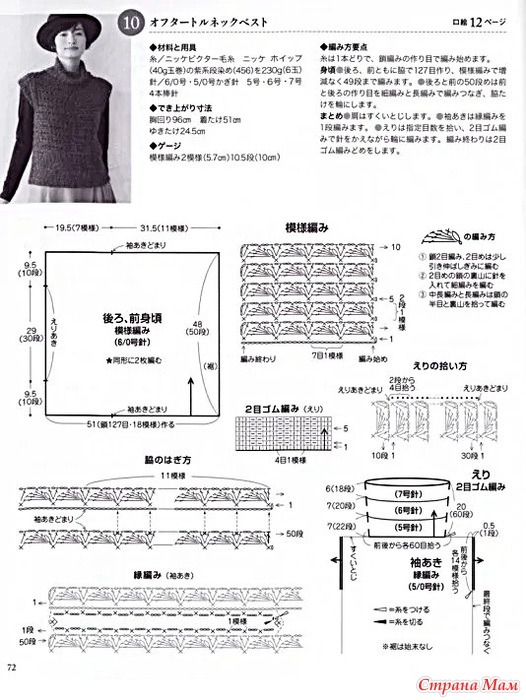 Провяжите 49 рядов лицевыми петлями без убавок. ● 50-й ряд спинки и переда — это передняя часть изделия.