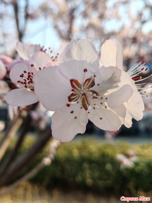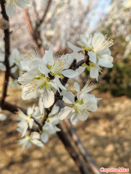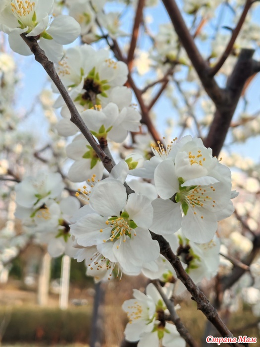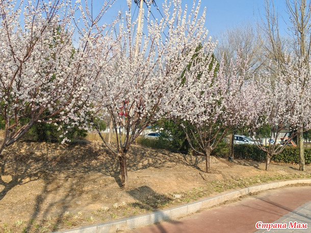 Вчера прокатилась по любимым местам и в маленьком сквере о котором давно забыла обнаружила сливовые деревья сорта "Нефритовые бабочки"